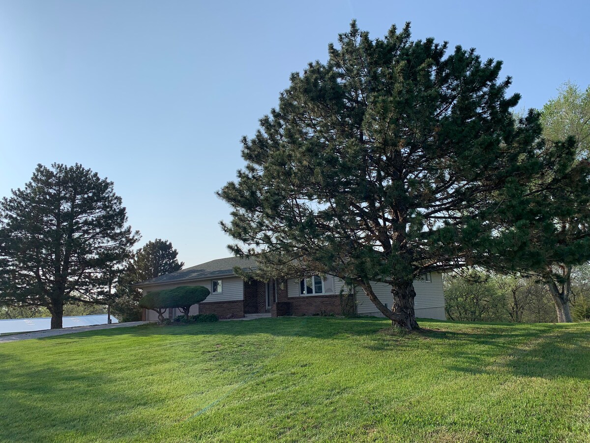 Quiet country getaway with a beautiful wooded setting! Enjoy the sunrise from the front porch with your morning coffee and the beautiful sunsets from the back deck before you retire for the night in this cozy retreat. A very serene view! We are 36 miles to Eppley Airfield, 35 miles to CHI Health Center, 25 miles to Charles Schwab Field, & 33 miles to the Old Market Omaha. If you want to slow it down, we are close to Slattery Vintage Estates Winery & Round the Bend Steakhouse.