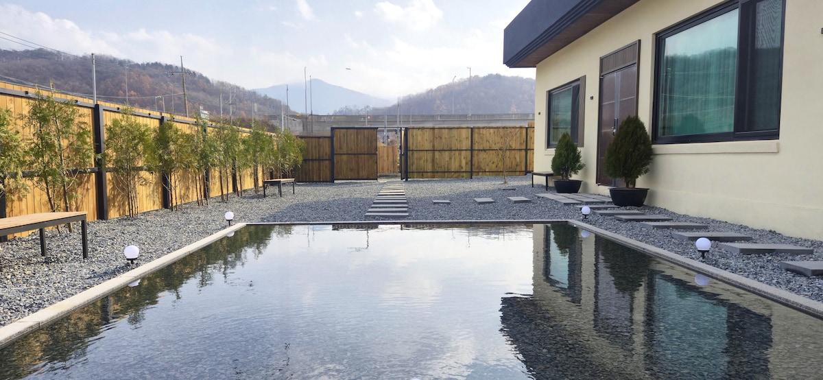 넓은 전용 주차장, 수영장, 노래방, 불멍, 마당 바베큐시설. 모든것들이 한팀만을 위합니다. 호텔식 침구류와 시스템을 사용합니다. 무조건 1회 사용후 전문업체를 통한 세탁과정을 거칩니다. 전용 수영장은 인피니티 풀로서 자가 여과 시스템과 자동 순환 시스템이 갖춰져 있습니다. 온수등 수온 조절은 불가능 합니다. 크기는 가로 세로 3.5m * 5.5m이며, 수심은 90cm 입니다. *25년도 수영장 운영기간 5/1 ~ 9/30 숙소 건물은 오래된 주택을 천장부터 바닥까지 풀 리모델링 했으며, 다이닝 건물은 24년 10월 신축 건물 입니다. 200평 부지에 45평 건물과 마당, 주차장으로 이루어져 있습니다. 마당에서는 야외 바베큐 시설과 나무 그늘 밑 침상, 불멍존이 있습니다. 게스트님의 편의를 위한 무인매점도 운영 중 입니다! 시골숙소의 조용함과 낭만, 현대적인 편안함이 공존하는 최고의 숙소를 경험하세요!