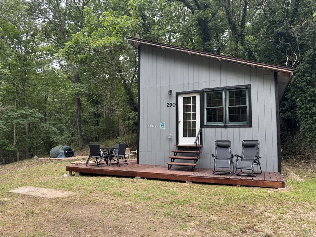This cabin is newly built in 2022 with a King bed and outdoor private hot tub. With a nod to the historic cabins found near national parklands. Just steps from a private trail, the cabin features a comfortable King Bed. Covered porches allow you to relax under the pines no matter what the weather. Amenities: Cable TV, In-room refrig & micro, coffee pot, climate control, on-site parking, community campfire/hammocks. Dogs are welcome for an additional pet fee.