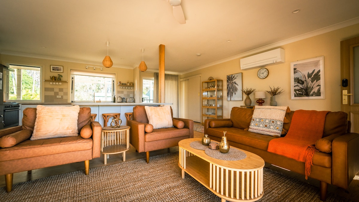 Mikinin evi özəl və sakitdir, şimala baxan yaşıl mənzərələri var. Qonaqların öz girişi, geniş hamam otağı və kiçik, yüngül yemək hazırlama sahəsi var. Barbekü olan ayrıca balkon da var. Parlaq və havadar otaqdakı orijinal sənət əsərləri onu unikal edir. Miki's Lennox Head Beach və Boulders Beach-dən təxminən 3 km məsafədə yerləşən yaşayış yerindədir. Ərazi dağlıqdır, odur ki, avtomobilə sahib olmaq yaxşıdır.