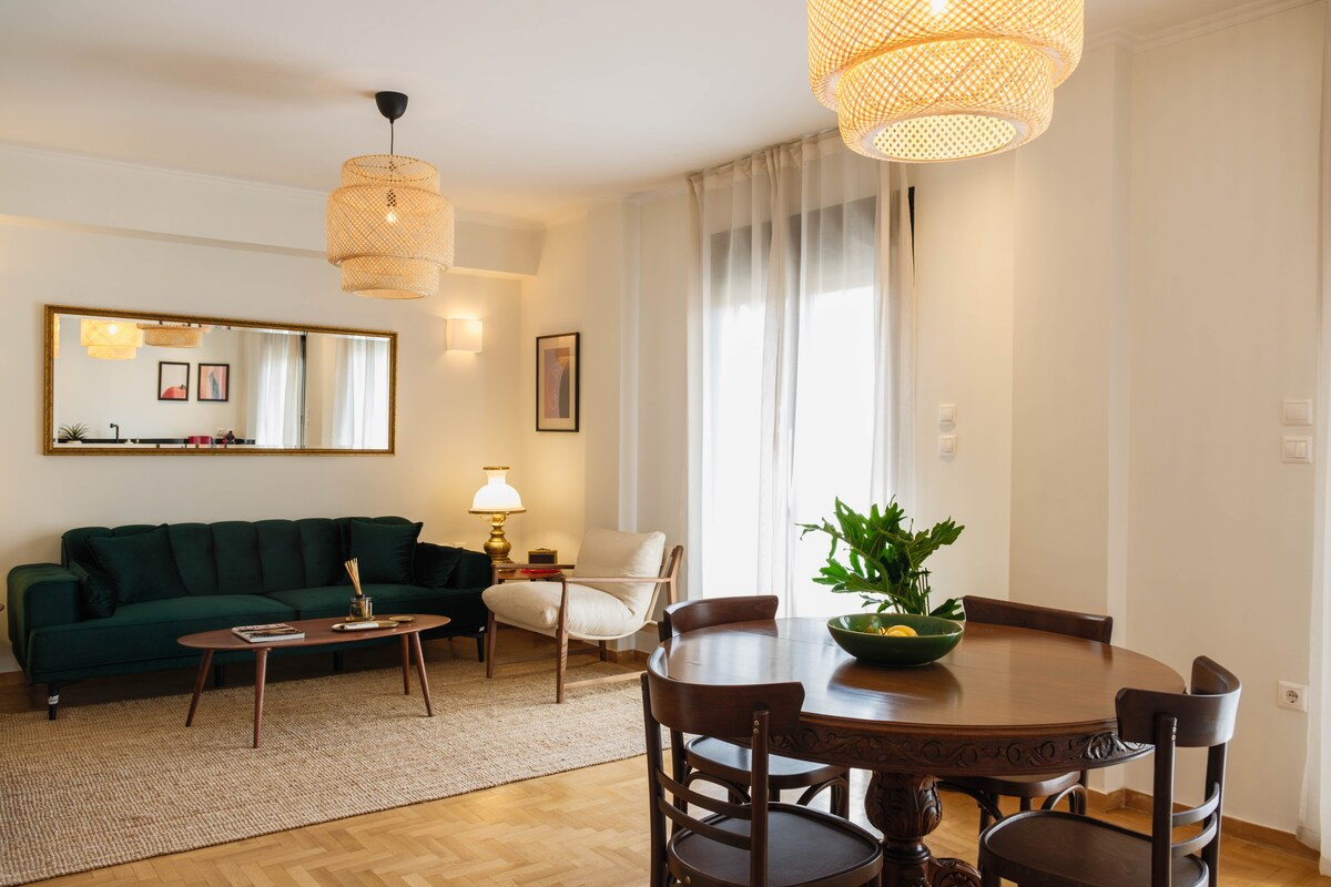 Experience a stylish 2BR, 1.5BA retreat—a bright, plant-filled oasis steps from Lykabettus Hill. Between upscale Kolonaki & lively Exarchia, enjoy boutique shopping, hidden gems & culture. - Prime central location - Artfully designed space with a beautiful terrace - 10-min walk to Panepistimio metro - Smart TV, AC, autonomous heating & hot water Perfect for: 🌿 Couples seeking a chic city escape 👥 Friends & families wanting a vibrant stay Enquire or Read below!