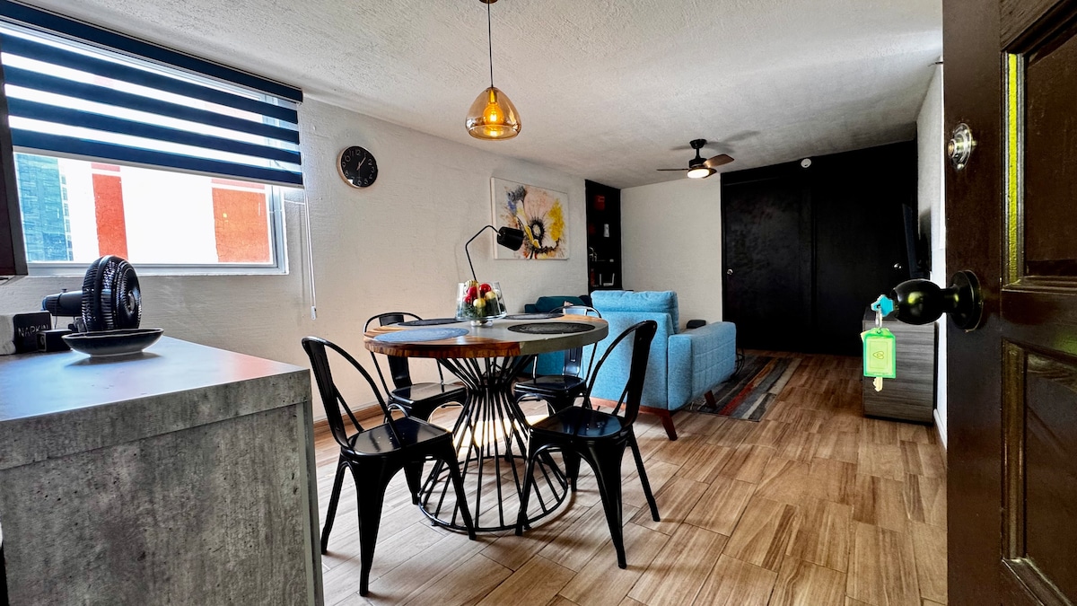 ✨ Av. mənzərəli müasir mənzil Chapultepec - Colonia Americana ✨ Av. üzərində yerləşən gözəl mənzil. Chapultepec, Qvadalaharanın ən canlı bölgələrindən birində. Mənzərədən, müasir dekorasiyadan və geniş məkanlardan zövq alın. CAS-dan cəmi 800 m və Expo Guadalajara-dan 3,5 km məsafədə, restoranlar, kafelər və gəzməli yerlərlə əhatə olunub. Burada 2 yataq otağı və hamam-tualet var, 4 nəfərə qədər qonaq üçün idealdır.
