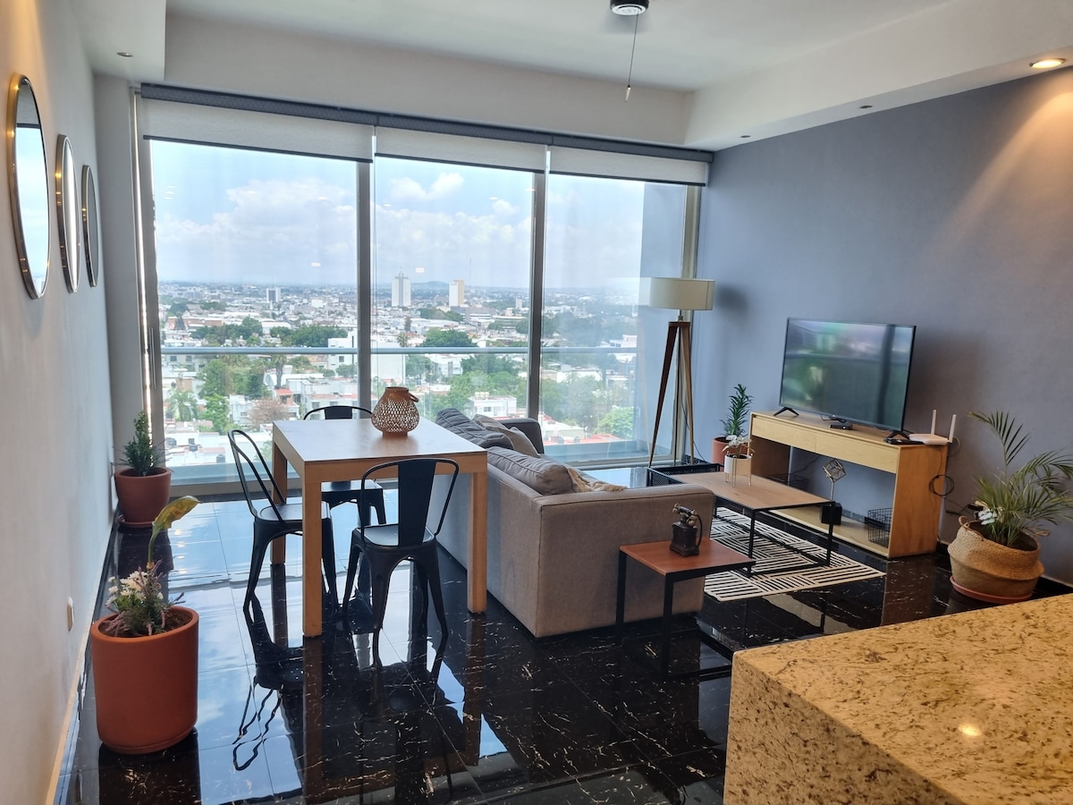 Nuevo y moderno edificio con la mejor ubicación, el departamento cuenta con una vista panorámica espectacular! La ubicación privilegiada estamos a 10 min de Plaza Andares a 10 min del centro de la ciudad a 5 min de Chapultepec a 10 min de la Expo y a 5 min de Providencia. Seguridad 24 hrs. El departamento está decorado y equipado por diseñadores para que vivas una experiencia confortable durante tu estancia. Aire acondicionado independiente disponible en cada habitación y en área común.