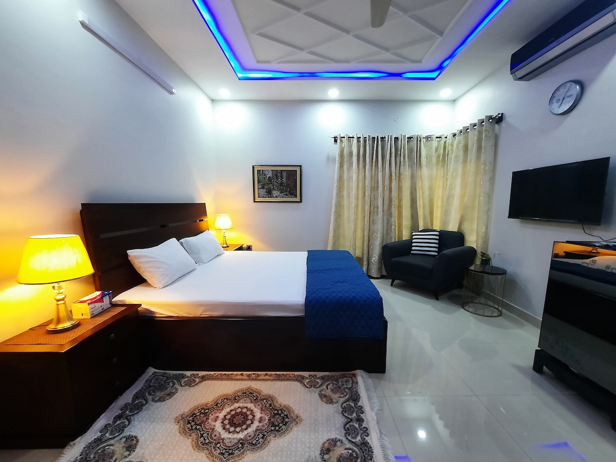 Ev Faisalabad şəhərini kəşf etmək üçün mükəmməl bir bazadır. Wapda City M Blokunda yerləşən, Canal Road Faisalabad 'dan 1 kilometr uzaqlıqda yerləşən bu yaşayış məkanında özünüzü evdəki kimi hiss etməyiniz üçün lazım olan bütün zəruri əşyalar var – Wifi, Netflix, Kinq ölçülü çarpayılar, Əsas təchiz olunmuş mətbəx (yemək bişirmə yoxdur) , hamam otağı üçün vaciblər və daha çoxu. Bu məkanın rahatlığı və sakitliyi mühüm xüsusiyyətdir.