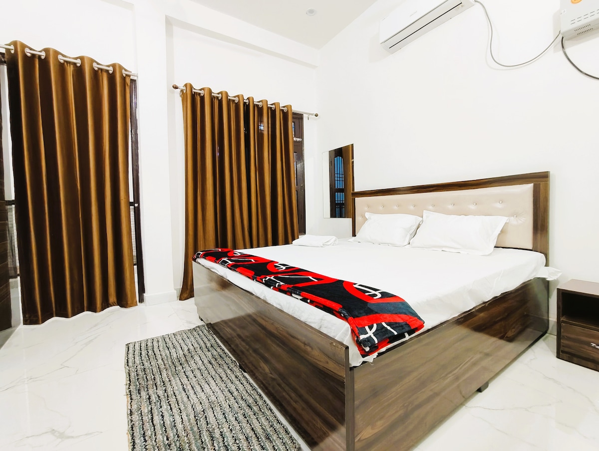 🌸 Ayodyada Ram Mandir yaxınlığında 2 otaqlı rahat məkan 🌸 Ram Mandirdən cəmi 1,5 km məsafədə sakit və rahat qonaqlamanın dadını çıxarın 🏡 Seçilən cəhətlər: - Yorğan və eyvanları olan, kondisionerli 2 yataq otağı -Stullar və masa olan yaşayış sahəsi - İsti su üçün geyzerləri olan hamam otaqları -Soyuducu, RO, qab-qacaq, qaz və balonlu mətbəx - Qonaqlar üçün əlavə döşəklər Təhlükəsizlik kameraları və parkinq mövcuddur 📍 Mövqe: -Ram Mandir - 1,5 km -Ayodhya Dham Stansiyası - 1,5 km -Ayodhya hərbi şəhəri - 7 km - Əsas yol - 300 m