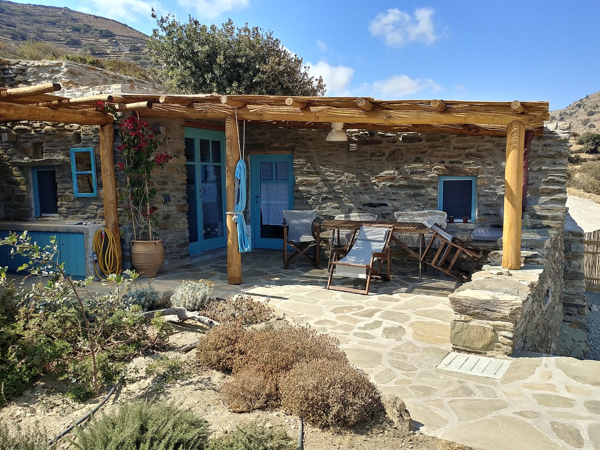 Bu, bu yaxınlarda təmir edilmiş, Triantarosun mənzərəli kəndindən 300 metr məsafədə yerləşən ənənəvi daş evdir. Zeytun ağacları ilə dolu bir əmlakda yerləşir, Egey dənizinə və yerinə geniş mənzərə açılır, yerli memarlıq və sadəliyi ilə birləşərək şəhərin problemlərindən uzaqlaşmaq üçün idealdır.