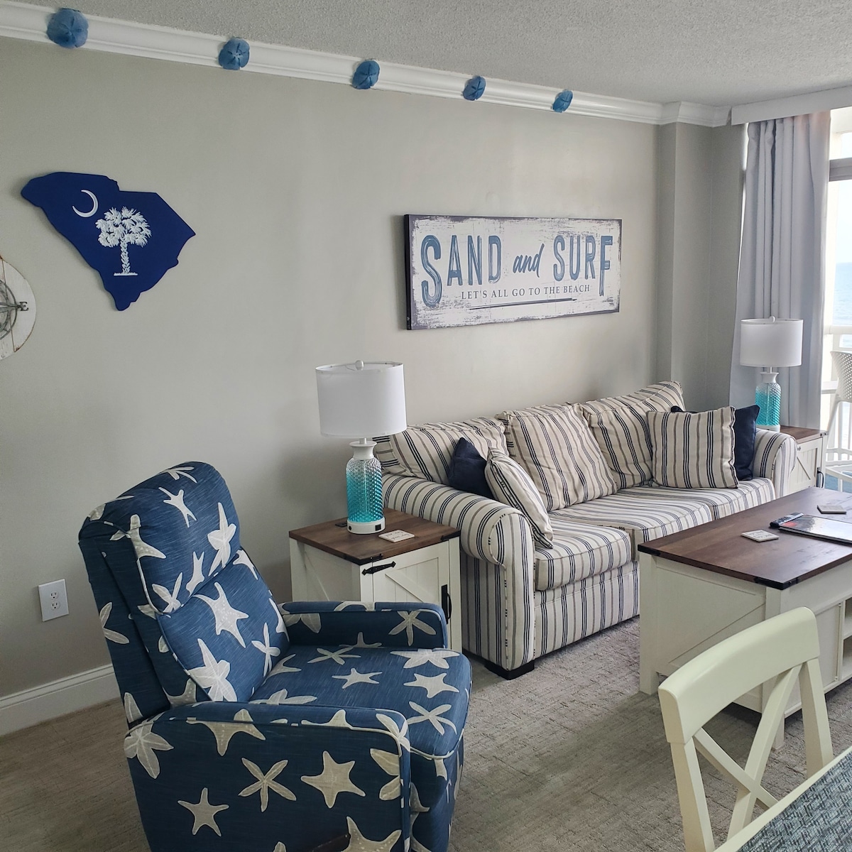 Şəxsi balkonunuzdan Atlantik okeanının və daxili ərazilərin nəfəs kəsən mənzərələrini və gün batımını seyr edin. Müasir sahilyanı dekor, Smart TV və rahat çarpayılarla tam təmir olunub. Çimərliyə, taxta döşəməli piyada yoluna və SkyWheel-ə gedən pilləkənlər. Sakit çayların, hovuzların, cakuzi, tiki bar və yerində Starbucks-ın zövqünü çıxarın. Mörtl-Biçin mərkəzində mükəmməl romantik və ya kiçik ailə tətili! Pulsuz parkinq və Wi-Fi. İndi bron edin!