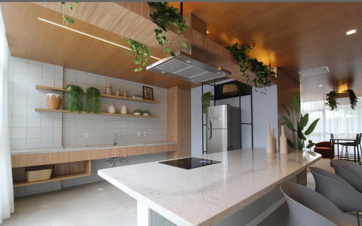 Qapını açın və içəri daxil olun... Beton cəngəlliyin mərkəzində "Uh uh, que beleza". Yaşıllıq və rahat atmosfer bu istirahətin Braziliya ritmini göstərir. Hər bir guşə sizi braziliyalı klassiklərin vinil üzərindəki səslərindən hiss etməyə, xəyal qurmağa və ilhamlanmağa dəvət edir. Bura iş və ya San-Paulu təcrübəsini yaşamaq üçün yerinizdir, çünki SP-də sevgi var. Ev həyatla, bitkilərin təravəti, kitab poeziyası və hər an müşayiət olunan bossa incə ritmi ilə canlanır.