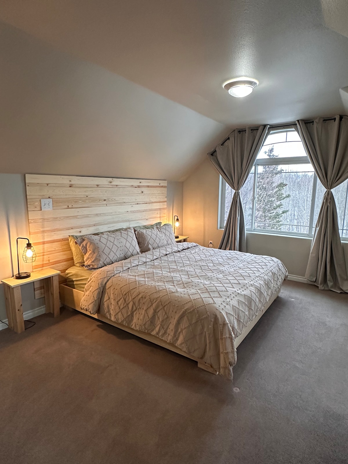 (1) "bir" tənzimlənən Tempur-Pedic KING çarpayısı və cakuzi reaktiv vannası olan bu dəbdəbəli süitdə dincəlin. Mənzildə limitsiz Wi-Fi, buxarı, 65" televizor, dəri uzanmış divan, stullu iş sahəsi, duşda gəzinti, boş masa, qəhvə, çay, kakao və səhər yeməyi barları ilə təchiz edilmiş balaca mətbəx də var. Meşəliklərlə əhatə olunmuş və qonşulardan tənha olan Hatchers Pass bölgəsinin rahatlığı və sakitliyindən zövq alır. Süita dağlardan və yamacdan bir neçə dəqiqə uzaqlıqda olduğu üçün yürüyüşçülər və xizəkçilər üçün mükəmməl yer.
