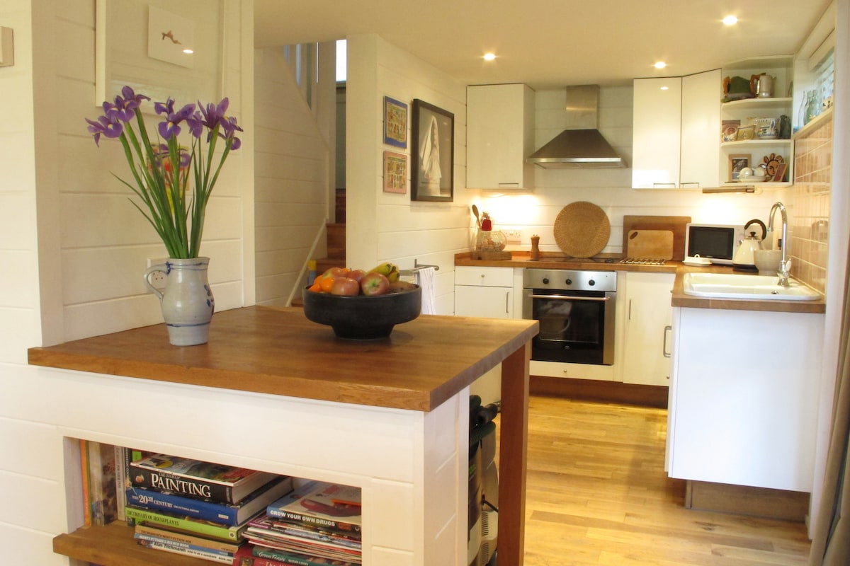 Welcome to The Garden Room, our studio mini-flat above the garage in our cottage grounds, loved by friends and family. It is small but cosy, with everything you need for a comfortable short stay for two people, or a longer stay for one. The setting is quiet and rural, yet there's a village shop and two pubs within 10 minutes walk, and just 15 minutes drive from J5 of the M3. Ideal for a weekend break, short stay, cycle stop, or writer's retreat. Please note it has sloping ceilings.