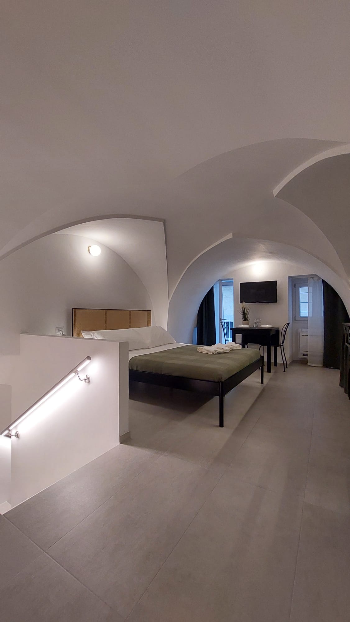 Situato nel pieno centro storico di Locorotondo, Ughetto, è una deliziosa suite: la zona giorno è fornita di ripostiglio, angolo cottura, tavolo da pranzo, frigorifero e TV. Un'alcova adornata di un antico arco in pietra accoglie il divano letto di supplemento alla zona notte situata nella parte est e fornita di letto matrimoniale, stand appendiabiti e TV. Il bagno è dotato di ogni comfort. L'intero appartamento è provvisto di riscaldamento, aria condizionata e wifi gratuito.