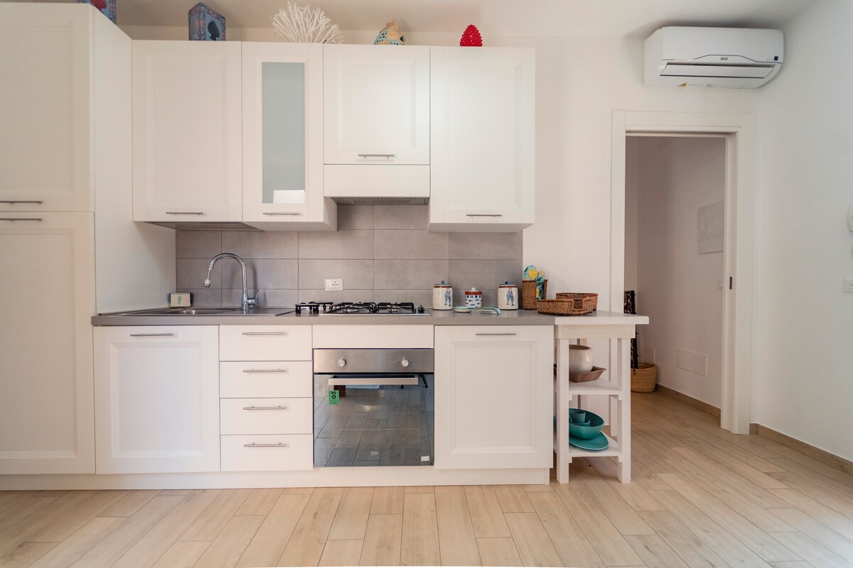 Vintaj təbii üslubda mebellə təchiz edilmiş ev balaca mətbəxli studiyadan və duşlu hamam otağından ibarətdir. Evə həyətə baxan qapıdan giriş var. Mənzil parlaqdır, Santa Katerina qalasına baxan Favignana marinasına baxır və kondisionerlə təchiz olunub. Mətbəxdə səhər yeməyi və kiçik yeməklərin hazırlanması üçün lazım olan hər şey var.