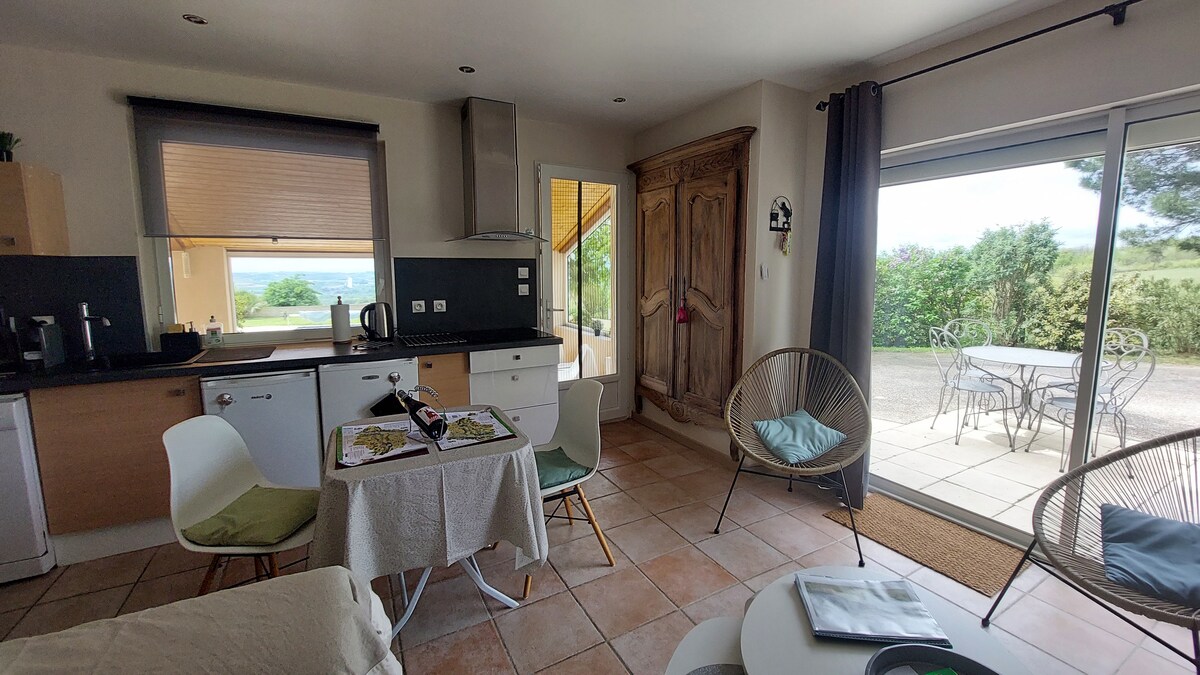 Petit studio niché dans la Drôme des collines, en pleine campagne, à proximité des lieux touristiques tels que le musée du Chocolat, le Palais Idéal du Facteur Cheval et la Maison de Marthe Robin. Tout près de vignobles réputés. Venez passer un petit moment ou un plus long pour vous ressourcer dans un cadre bucolique. Le studio se trouve dans une aile de la bâtisse, habitée uniquement par les voyageurs. Pour y accéder, il faut traverser la cour de la maison.