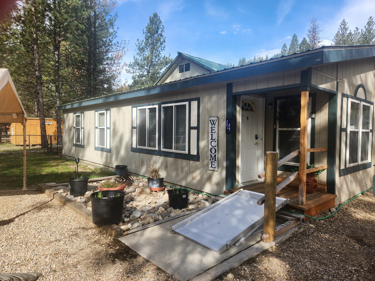 Soak in the South Fork of the Payette River's largest odorless hot spring with NO shared spaces. A two room bungalow awaits with one bedroom, living room futon, dining room table, frig, microwave, coffee maker, & flat screen TV. Your private bathroom is a short walk away, steps from the pool. Adults only, two-person max, no smoking & pet free. Please click on pictures to reveal captions, and read the entire listing for details. Come relax & enjoy "Robe Life" at the hot spring ranch!