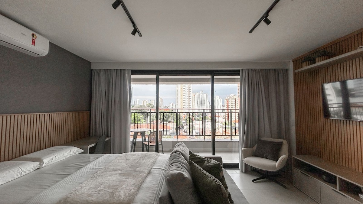Jardim dos Estadosda panoramik mənzərələri və tam strukturu olan müasir studiya. 4 nəfərə qədər yerləşir (çarpayı və divan-çarpayı), kondisioner, 300 mbps Wi-Fi, avadanlıqla təchiz olunmuş mətbəx, iki Smart TV və şəxsi örtülü qaraj var. Binada: istilikli hovuz, sonsuzluq hovuzu, quru sauna, fitnes mərkəzi, kovorkinq, oyun otağı və camaşırxana (ödənişli istifadə). Şəhərin ən yaxşı yerlərindən birində 24 saatlıq köməkçi, panoramik lift və çoxlu rahatlıq.
