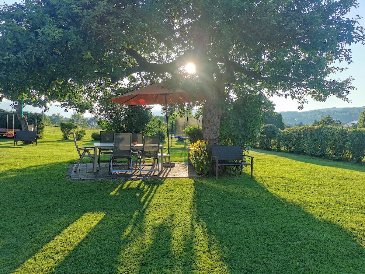 Urlaub auf der Sonnenseite des Kärntner Rosentales. Kleine aber feine Ferienunterkunft mit separatem Eingang für 2 Personen. Die Ausstattung umfasst eine Küche, Schlafzimmer, Dusche, WC, Terrasse und einen schönen Garten. Die Tourismusregion Wörthersee- Rosental bietet zahlreiche kulturelle und sportliche Ausflugsmöglichkeiten : In der näheren Umgebung befinden sich: Klagenfurt, Villach, Velden am Wörthersee, der Drau-Radweg. Auch Slowenien (Bled) oder Italien (Tarvis) sind einen Ausflug wert.