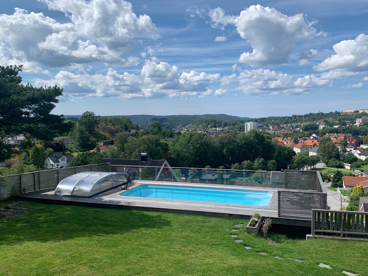 Dette er et unikt sted til å skape nye minner som ligger i en privat og skjermet bakgård. Dette er en eiendom vi benytter som feriested og ønsker å dele dette med andre. Eiendommen ligger midt i Halden sentrum med umiddelbar nærhet til ALT. Rengjøringsgebyret som er obligatorisk, er oppredde senger når dere kommer i tillegg til håndklær og det at vi ser over etter dere. Dere forlater huset som dere fant det. Fra 1 juli til 31 juli er det kun utleie på 3 netter eller mer