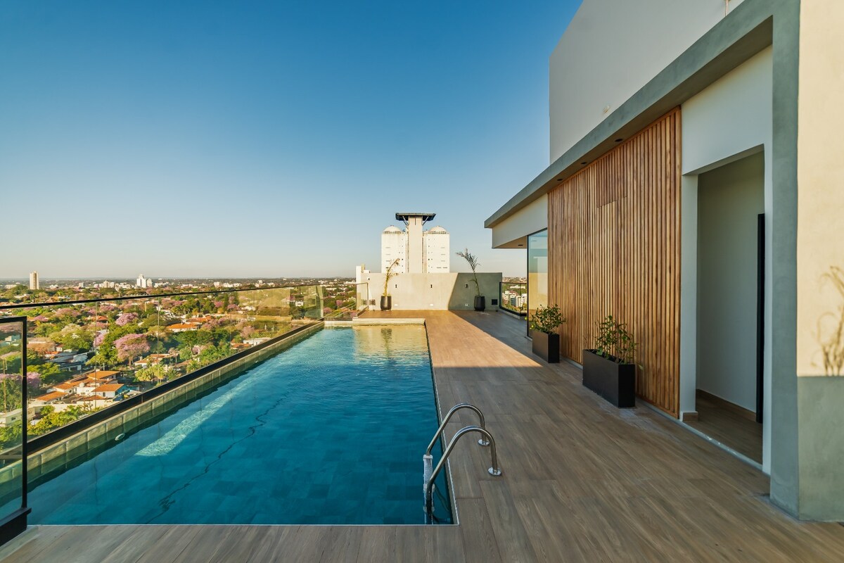 Bir neçə gün və ya bir neçə ay ərzində Asuncionda qonaqlamanızdan zövq almağınız üçün gözəl rahat kondominium hazırdır. Ehtiyacınız olan hər şey daxildir. Villa Morra/Mariscal, supermarket və bir çox restorana qısa gəzinti. Damın üst hovuzu, barbekü və idman zalından istifadə edin. Əla mənzərəsi olan böyük balkon. Özünüzü evinizdəki kimi hiss etmək üçün Wi-Fi, yataq dəstləri, mətbəx və hər şey.