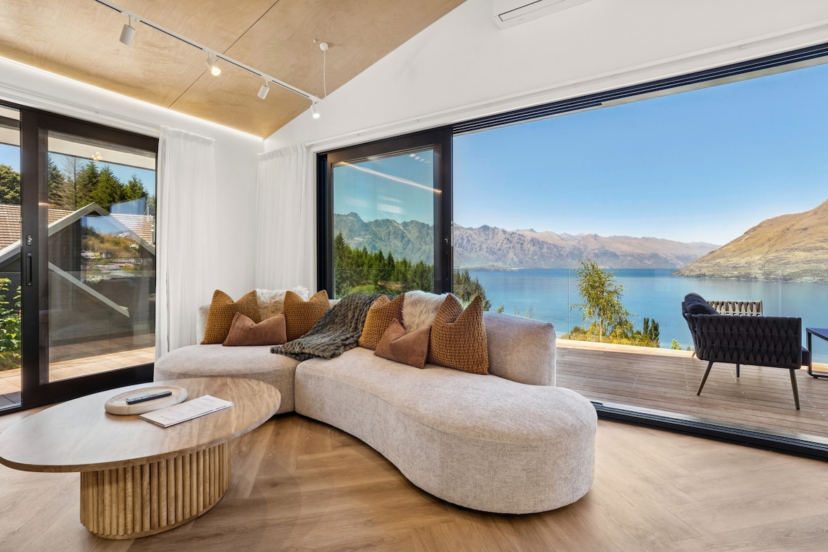 An incredible setting, with unparalleled views of Lake Whakatipu and The Remarkables, Crystal Waters is a brand new property conveniently located within suburban Queenstown, but away from it all. Our suites contain upscale rustic interiors, wood burners, full kitchens, and floor to ceiling windows to enjoy uninterrupted panoramic views from every room. Whether it be a mountain adventure or a romantic getaway, our suites are the perfect spot for treasured memories.