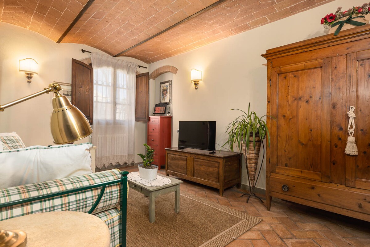 Charming Retreat for Two, 15 Minutes from Vinci Escape to a cozy hideaway perfect for couples seeking relaxation and comfort. Enjoy a private garden and a shared travertine pool with stunning views of the Tuscan countryside—especially magical at sunset. Ideal for romantic, slow-paced weekly stays. We live on the property with discretion and are happy to assist if needed. A car is required to reach the house.