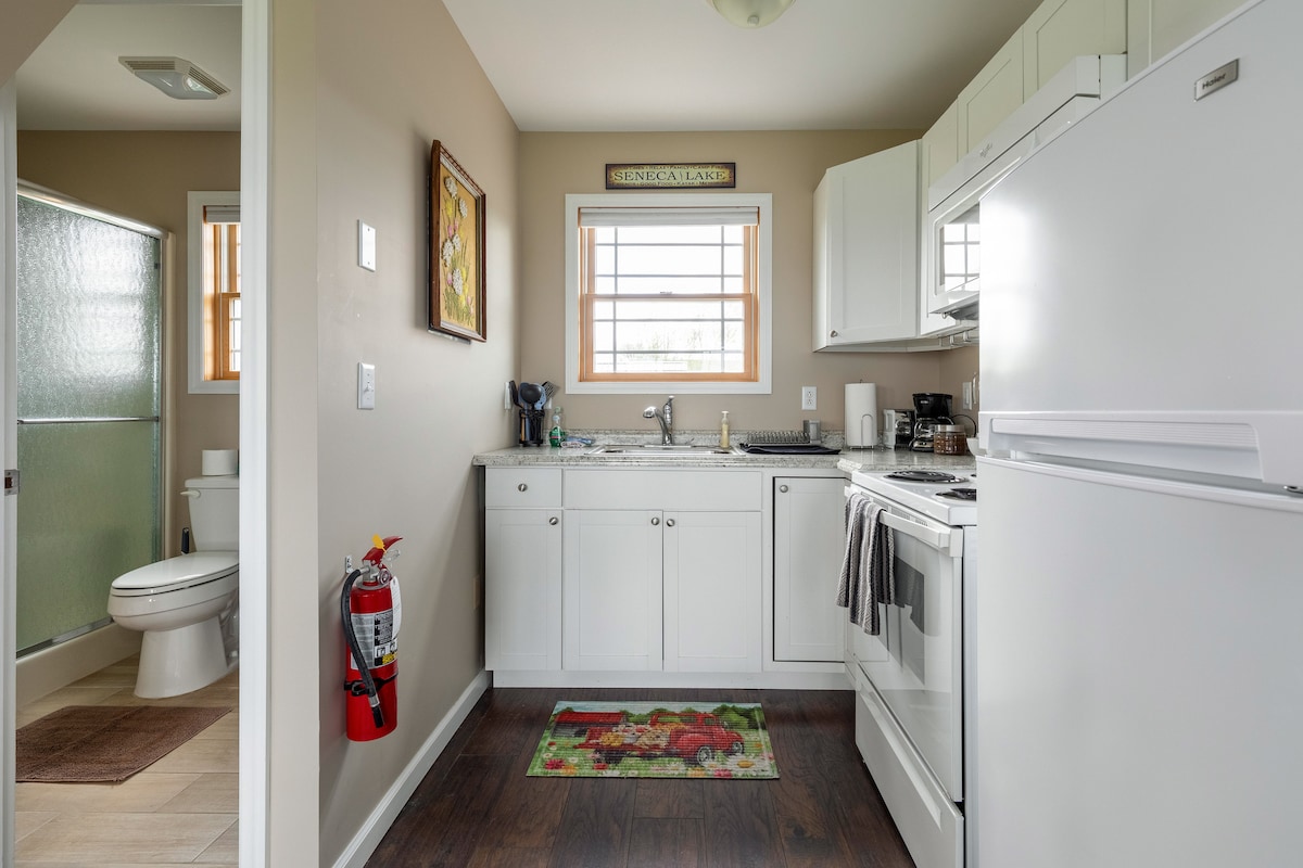 Sakit ölkə mənzərəli mühitdə və Watkins Glen-dən yalnız 3 mildən az məsafədə rahat loftumuzda qonaqlayın. ** * Qonaqlayacaq qonaqların düzgün məbləğini yerləşdirin.*** Loftda səhər yeməyi guşəsi, mətbəx(soba yoxdur), qəhvə maşını, mikrodalğalı soba, toster, soyuducu, tv, Wi-Fi, stolüstü oyunlar, 2 rahat kraliça çarpayısı, şkaflar, dəsmal və imkanlarla dolu hamam var. Ətraf ərazidə edilməli çox şey var. Seneka gölündə rahat bir gündən alış-veriş, yürüyüş, şərab zavodları və pivə zavodları. Digər elanımıza nəzər salın.