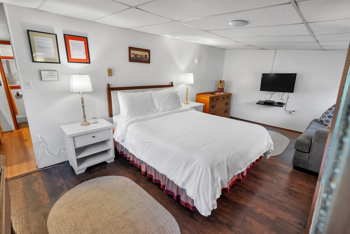 Stay just steps from Seneca Lake and enjoy everything the Finger Lakes has to offer! Coffee and sunrise on the docks, afternoons exploring nearby wineries, and finish your evening with a cocktail in our restaurant! Whether you're here for a wine weekend, a wedding, or a relaxing summer getaway, this is your perfect home base. This queen room is designed for a simple, relaxing stay. Located in our creekside building, this room offers a quiet place to recharge after a day on the lake.