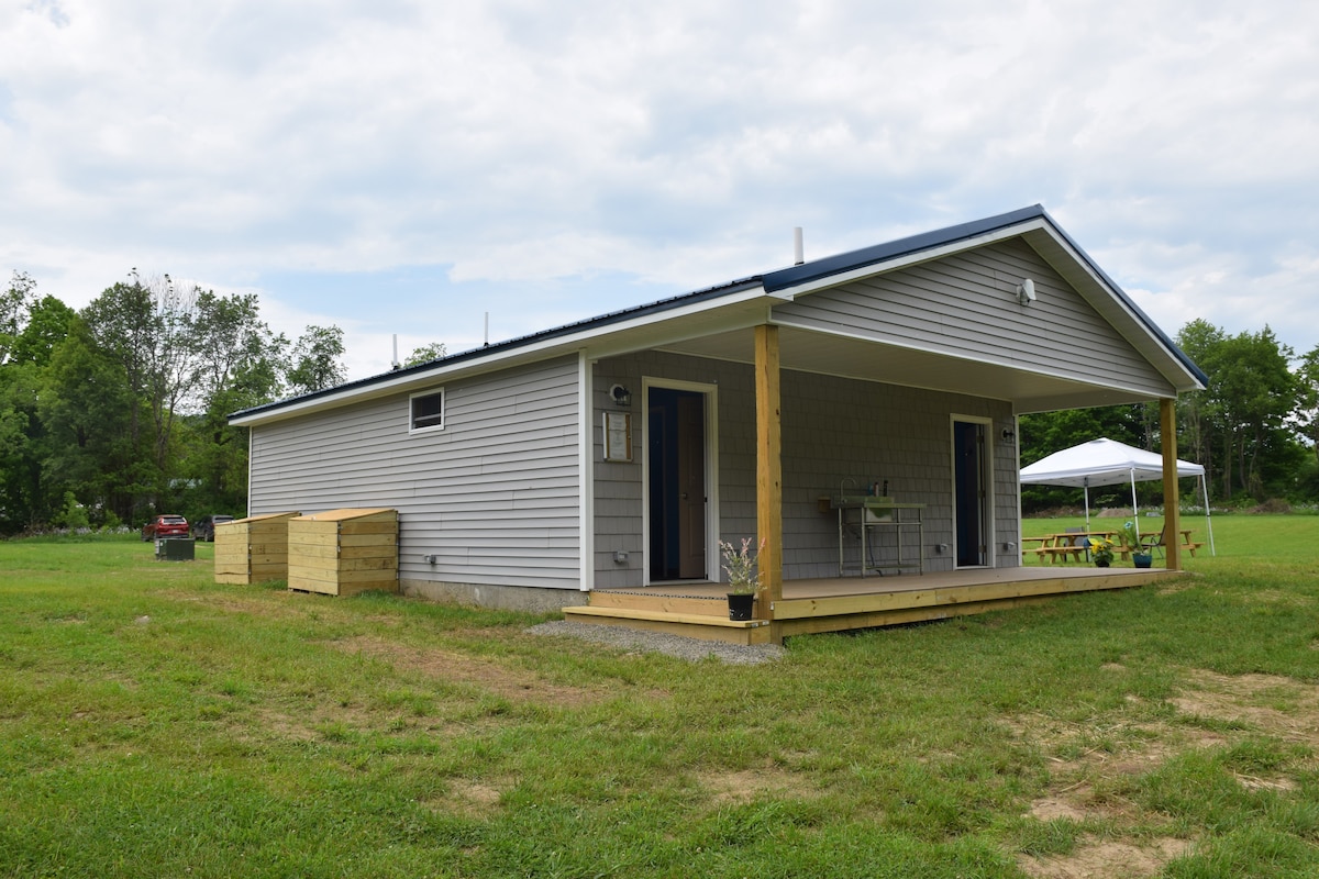 Barmaq göllərinin mərkəzində öz açıq mətbəxi və hamam otağı olan bu dəbdəbəli qlempinq çadırında qonaqladığınız zaman təbiətin səsindən zövq alın! Bredforddakı Lamoka və Uaneta gölünün yaxınlığında yerləşən şəhər ovçuluq, balıqçılıq, yürüyüş və şərab zavodlarının mərkəzi mövqeyindən zövq alır. Hammondsport və Watkins Glenn NY-dən qısa məsafədə! Bobcat Bungalow dizaynımızın çoxunda təkrarlanan materialları özündə birləşdirən günəş enerjisi və çəkisi ilə qidalanan içməli sudan istifadə edən 4acresdə yerləşən şəbəkədən kənar təcrübə təklif edir.