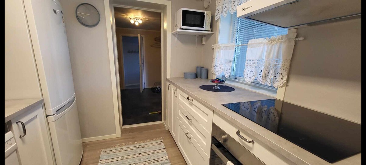 Bu, Skjervøy-nin mərkəzi hissəsində gözəl mənzərəsi olan gözəl bir evdir. Kiçik uşaqlarla səyahət edirsinizsə, çarpayı, dəyişən masa və uşaq çarpayısı var. Evdə mətbəx, hamam otağı və camaşırxana üçün lazım olacaq bütün imkanlar var. Möhtəşəm mənzərəsi olan böyük balkonda dincələrkən gecə yarısı günəş altında çimən füsunkar təbiətin gözəlliyindən zövq alın!