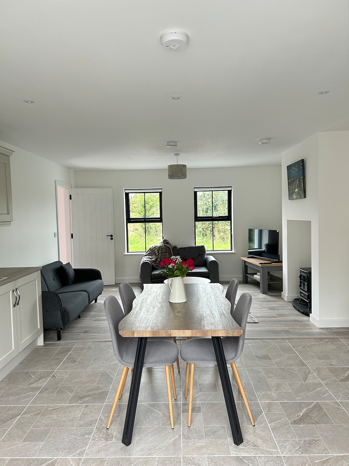 This modern, luxurious cottage is truly special. It is located in the Tawnawully mountains by Lough Eske. It is set on 12 acres with a river running through it and a tumbling waterfall right by the cottage. Only 15 minutes drive to Donegal town, which has some really nice restaurants and bars. There is a castle to explore in the town and a wonderful craft village with a very good cafe. Ten minutes drive to Harveys Point and twelve minutes from Lough Eske castle, both reputable 5 * hotels.