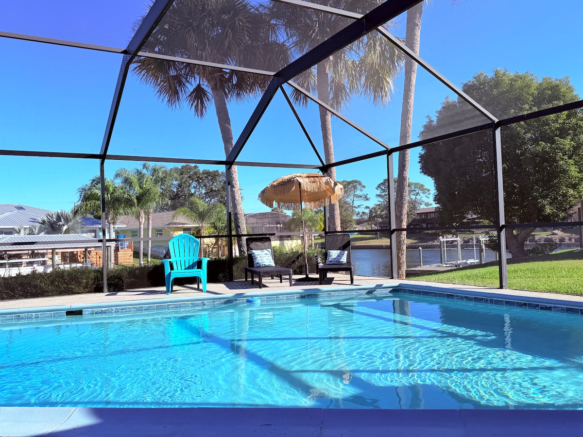 Family-Friendly Coastal Luxury — Heated Saltwater Pool (no charge) & Private Dock! Brand-new canal-front home just 10 minutes from the beach. Swim in the heated saltwater pool, fish from the private dock, or explore the water—watch for dolphins and manatees! Enjoy stylish coastal décor and modern comforts for a relaxing family getaway. <ul> <li>Heated pool</li> <li>Private dock</li> <li>Waterfront views</li> <li>Family-friendly</li> <li>Close to beach</li> </ul>