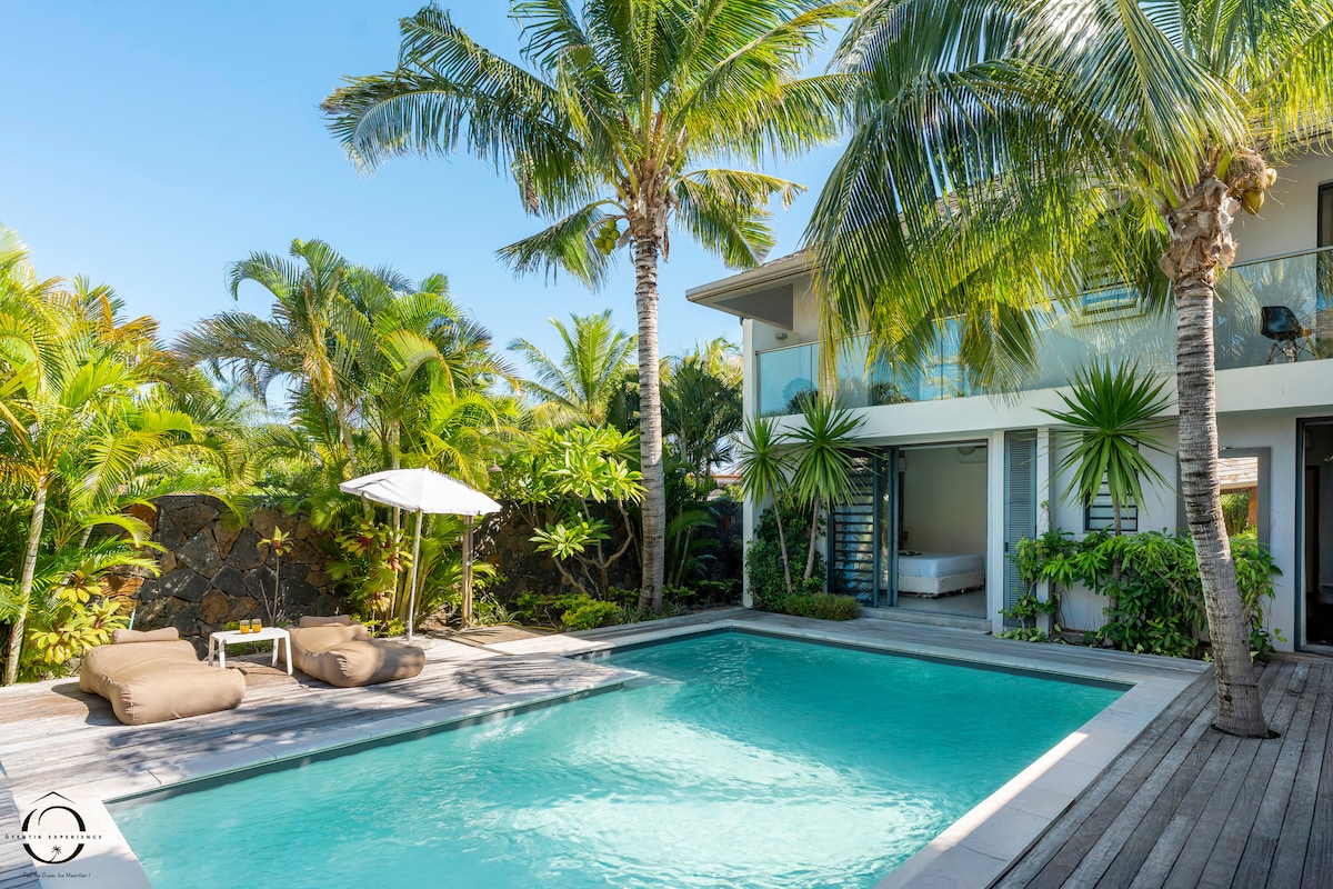 2-ci mərtəbədə vanna otağı, işıqlı qonaq otağı, təchiz olunmuş mətbəx və xoş terras daxil olmaqla 2 yataq otağı təklif edən gözəl müasir mənzili kəşf edin. Gün batımını seyr etmək üçün mükəmməl hovuz və əla okean mənzərələri olan paylaşılan dam örtüyündən də zövq alacaqsınız. Flic en Flac çimərliyinə yaxın, mağaza və restoranlara yaxın yerləşən yaşayış yeri komfort, istirahət və ideal mövqeni birləşdirir.