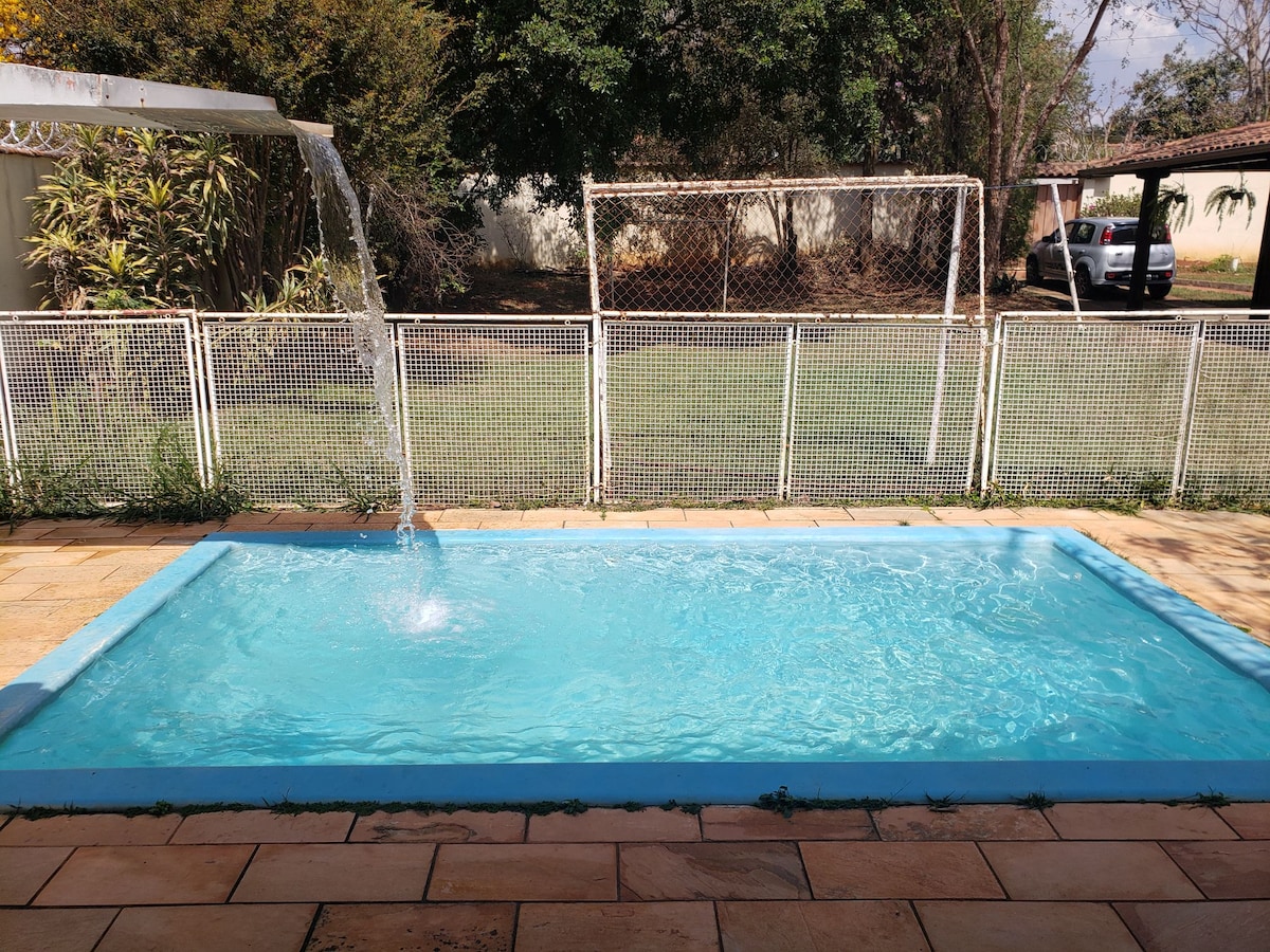 Ambiente agradável, arejado e bem-iluminado, com 1000m2. Excelente para relaxar e descontrair com família e amigos. Bem arborizado com diversas frutíferas e pássaros nativos. Possui piscina de 1m de profundidade com cascata, numa área cercada para maior segurança. Playground e sinucão recém reformados. Campo gramado com 2 gols e rede para vôlei/peteca. Sofá grande e retrátil. Cama king-size em um dos quartos. Varanda ampla em torno de todo o sítio. Bem localizado, próximo à supermercados.
