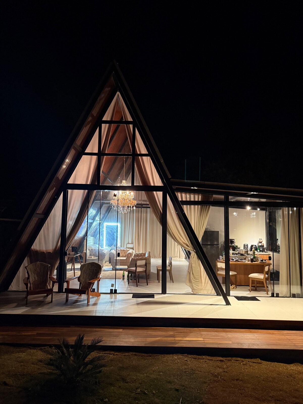 Uma cabana no meio de uma floresta privativa onde conexão com a natureza, romance e muito conforto andam juntos. Viva a experiência de dormir olhando as estrelas, ande sobre uma rede horizontal posicionada em meio a copa das árvores, o banheiro tem paredes de vídro, a cortina automática se transforma em um cinema. Na área externa além de churrasqueira suspensa a cabana oferece uma banheira vitoriana da década de 40 para um banho inesquecível. Tudo isso aliado a muito charme e tecnologia.