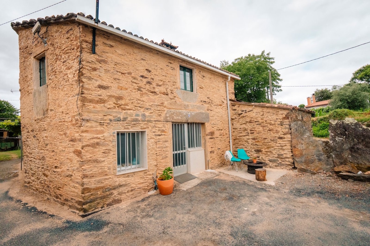 Santyaqodan 10 dəqiqəlik məsafədə və Fransız Yolunun penultim mərhələsində bağı olan kottec. Restoran və barda 100 metr piyada gəzinti. Təbii sakit şəraitdə piyada və velosiped yolları. 100 km (1 saat) maraq nöqtələri: -Rías Baixas: çimərliklər, Albariño şərab zavodları -Rías Altas: Finisterre, Costa da Morte -Lugo: Playa de las Catatedrales, Orta əsr divarı -Burense: təbii isti bulaqlar, Sil kanyonlar, Ribeiro və Mencía şərab zavodları