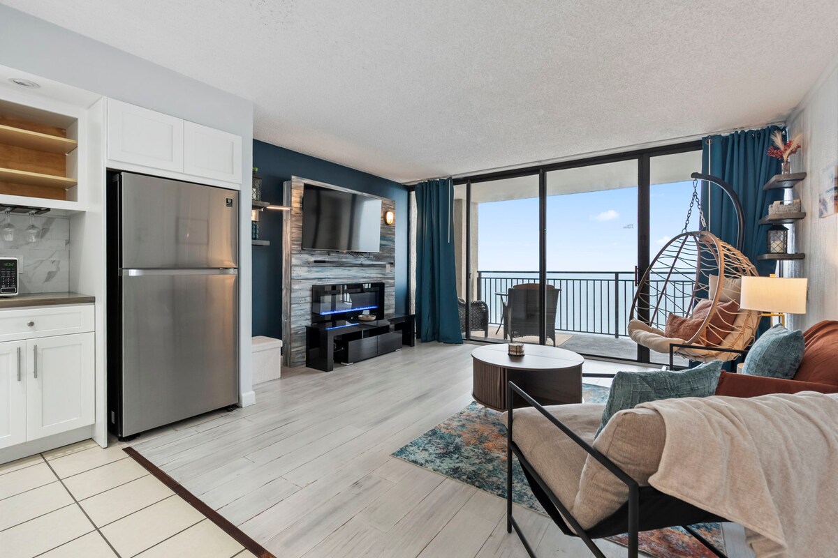Welcome to “The Lover's Lighthouse” a Myrtle Stays Property in Myrtle Beach, SC. Experience panoramic ocean views and the Myrtle Beach skyline fireworks & sunsets. Amenities Include: - 1 King Bed in the Main Bedroom - Fireplace and Smart TV - Full Bathroom, toilet, and shower/tub. Stocked Kitchen: * Full Refrigerator * Full Oven with 4 burner top * Keurig Coffee Maker * Sink * Microwave - Indoor/ Outdoor Pools (heated) - Lazy River - Rooftop Pool (heated) with Hot tub