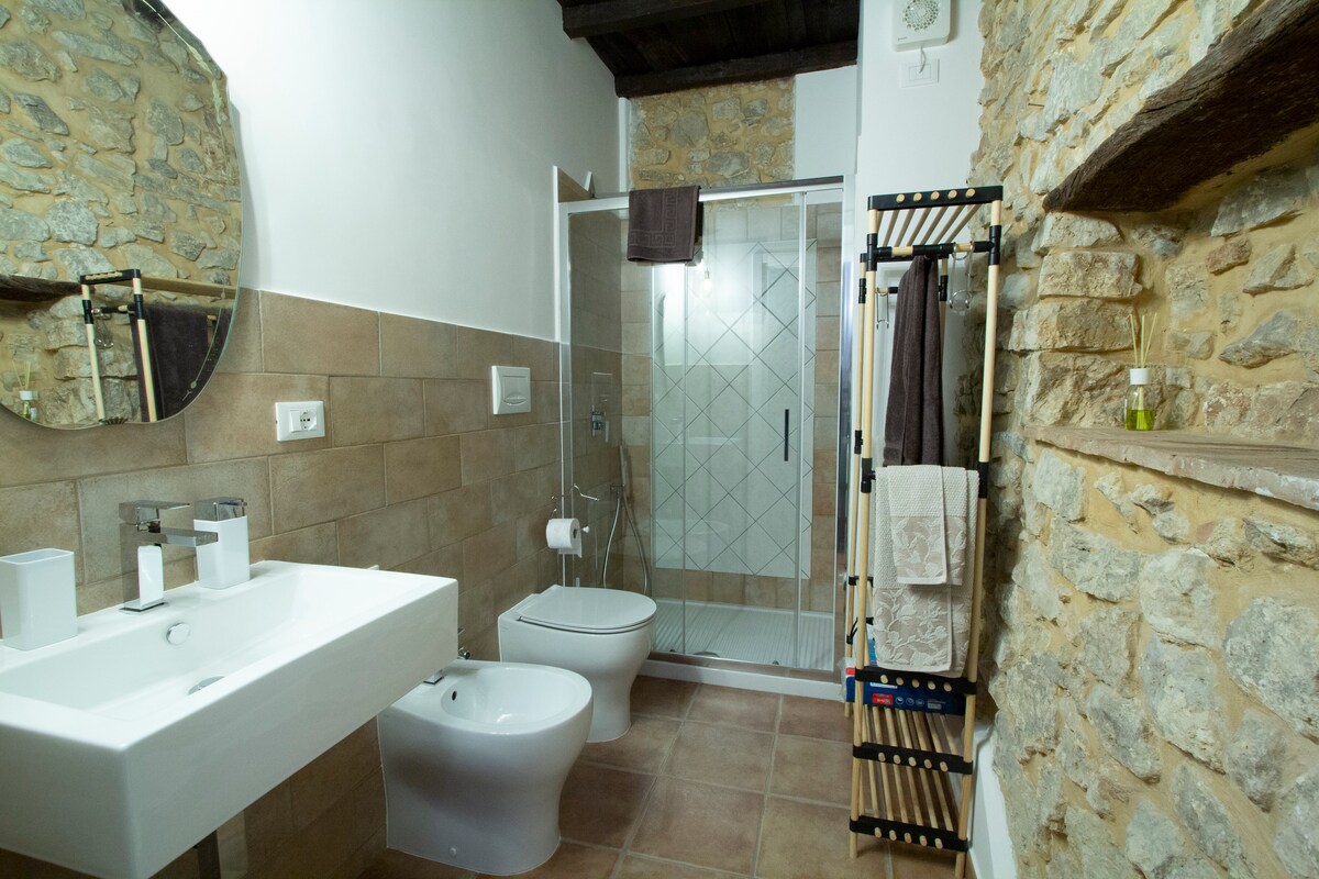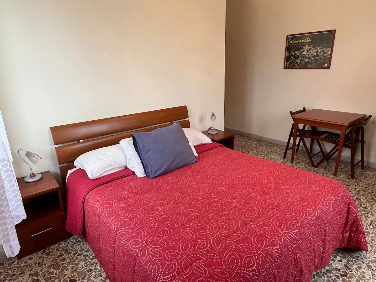 Una camera con un letto matrimoniale, separabile su richiesta in due letti singoli, disposta al primo piano. La camera ha un bagno privato con vasca.