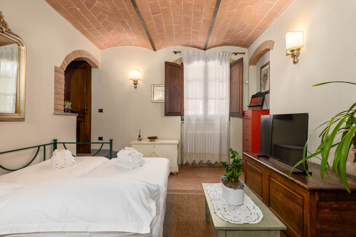 Mənzil tipik Toskana fermasının bir hissəsidir və yaşıl kənddə yerləşir. Tamamilə müstəqil olan buxarı ilə tam təchiz edilmiş mətbəx, TV və divan çarpayısı olan qonaq otağı, duşlu vanna otağı və ikinəfərlik yataq otağından ibarətdir.