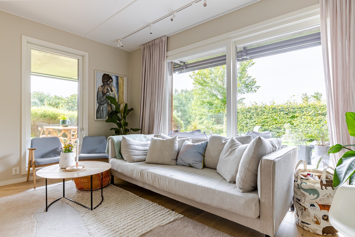 Light and nice apartment, 50 m2. Lovely surroundings! Perfect place for hiking and relaxing. Private entrance and private patio outside. Free parking outside the house. One bedroom with double bed and one single bed. 12 min walk to bus stop, 23 min bus ride to Oslo. 4 km to Sandvika, 8 km to Asker. Quiet and peaceful neighborhood. Sea view, a few meters to jetty and beaches. Rent single/double kayak. Bikes, fishing gear and tennis gear available for free.