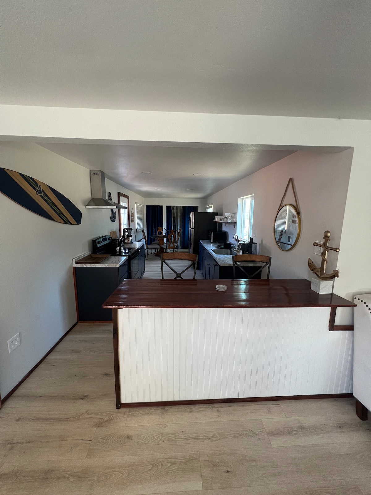 Bu sakit, dəbli məkanda dincəlin və enerji toplayın. Uzaqdakı ağaclarda, çəmənliklərdə və okeanda böyük şəkil pəncərələrinə baxaraq oyanın. Kiçik çəmənliyə və meşəyə baxan arxa tərəfi şirinləşdirin. Gecənin dərinliyində söhbətlər üçün rahat buxarı. Yoqa ayaqaltını çıxarmaq və ya yaradıcı olmaq üçün otaq. Yemək və içmək üçün xüsusi bar və barstullar. Əl işi sayğaclar, kiçik mətbəx və şifer plitələri, xüsusi çanaq və yeni divar plitələri olan dəbli hamam otağı. Ölkə zolağında vəhşi təbiət gəzintisi.