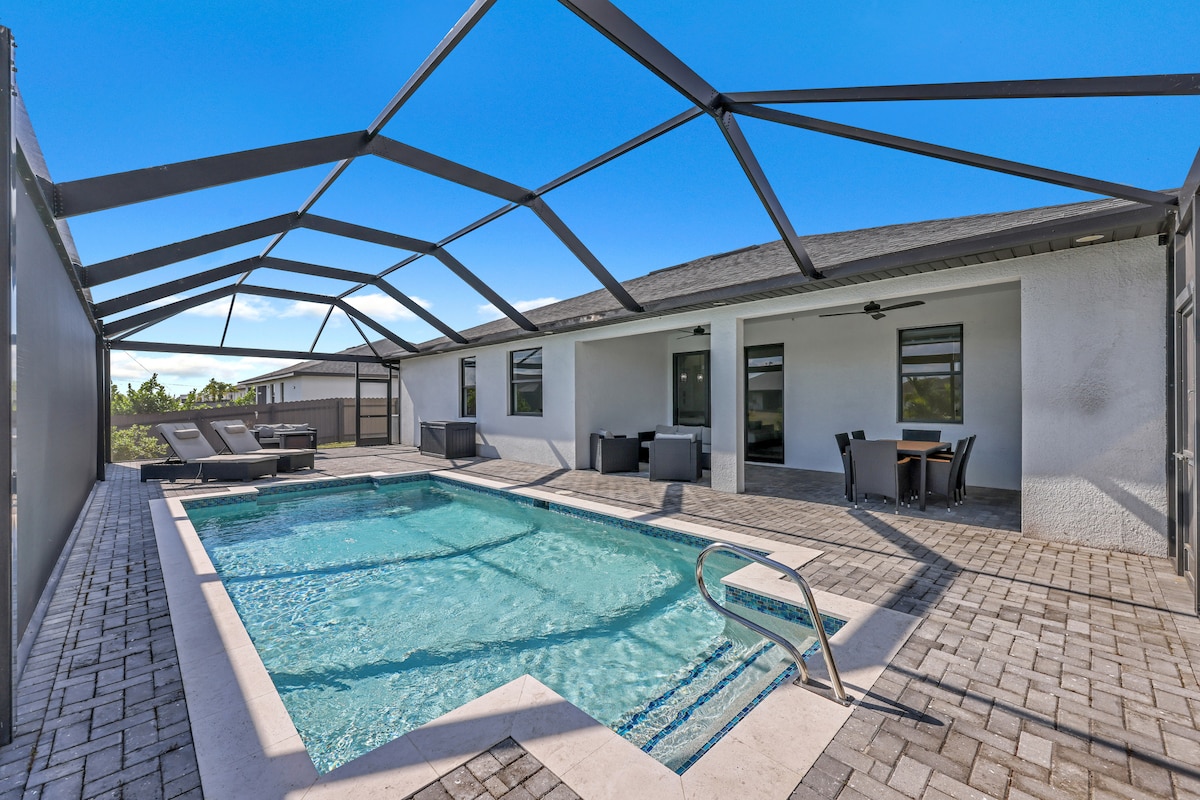 ★ Yeni 4 yataq otağı/2 hamam otağı olan sahilyanı ev ★ Təmizlik və rahatlıq üçün ən yüksək qiymətləndirilən ★ İstilikli Duzlu Su Hovuzu və İsti Suyun Qaynağı ★ Ekranlı Lanai + Qril + Günəşin Batma mənzərəsi ★ Tam təchiz olunmuş mətbəx və oyun otağı ★ Geniş Açıq Mərtəbə Planı – 12 nəfərlik ★ Balıqçılıq, Odluq və Açıq Havada Yemək ★ Sahil Kənarında Palmaların Altında Dincəlin ★ Keyp-Koral çimərliyinə və yemək yerlərinə bir neçə dəqiqəlik məsafədə ★ Fort Mayers, Sanibel və Körfəz Əyləncə Mərkəzinə yaxın ✨ Villa Belleriva: Komfort, üslub və Florida günəşi cənnətdə unudulmaz qonaqlama üçün bir araya gəlir.