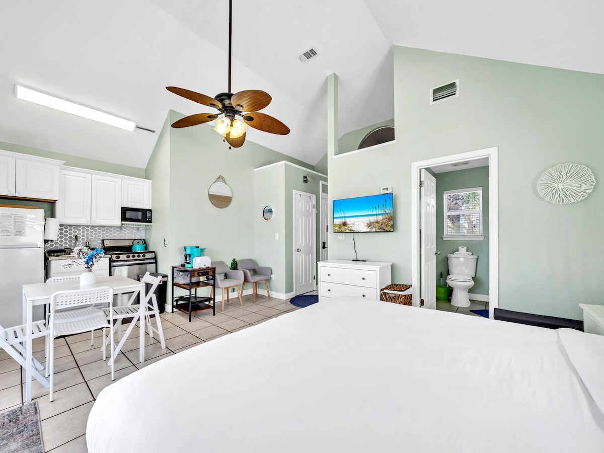 - Destin Kristal Çimərliyi ərazisindən bir blok - Destin Commons w/ Whole Foods və alış-veriş üçün 0,6 mil - Pabliksə 1.0 mil - Bu, yuxarıdakı VAHİDDİR (eyni ev sahibi vasitəsilə ayrı-ayrılıqda icarəyə verilir). Hər bir vahid tam ayrıdır. Parlaq və havalı bir otaqlı kottec olan Destin Doublemint çimərlik istirahəti üçün mükəmməl yerdir. Qumda 2 dəqiqəlik yerimə məsafəsindən daha azdır, bu da gün batımına doğru getməzdən əvvəl hovuzda üzmək və ya AC-də film izləmək asanlaşır.