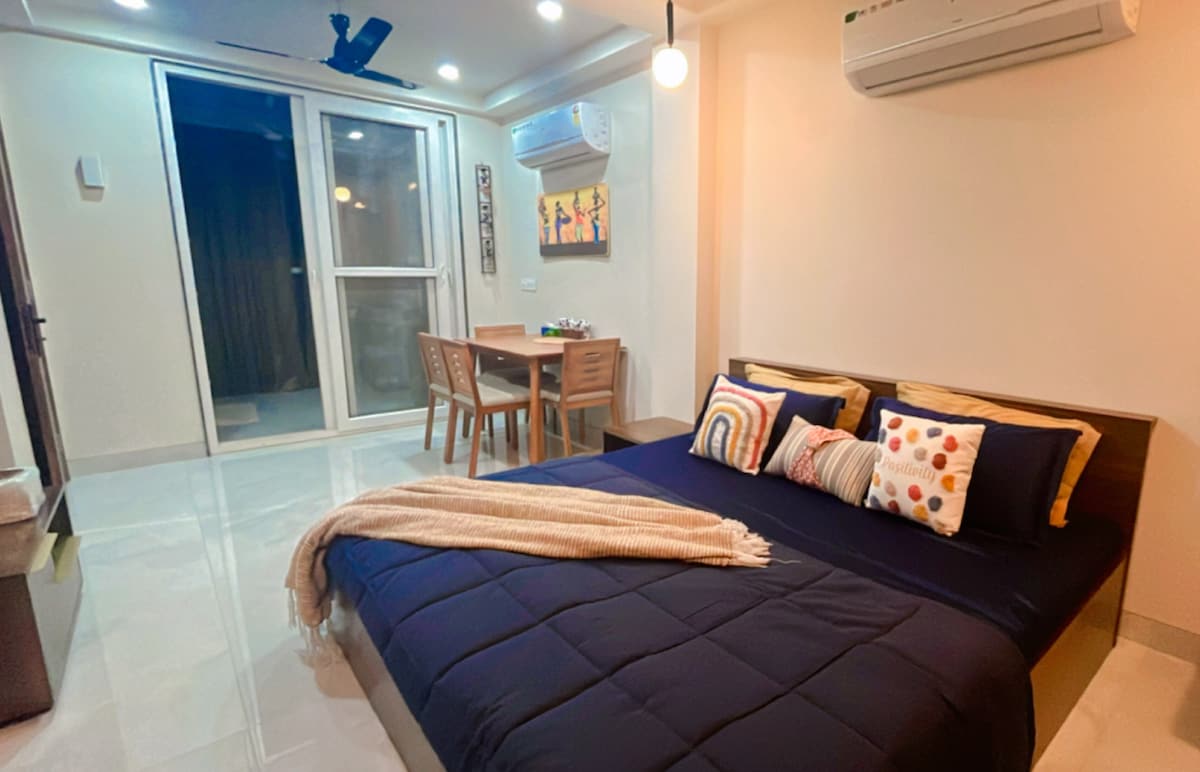 Welcome to our stylish studio in AIPL Joy Square! 1. Modern studio with a lavish washroom and all essential amenities. 2. Free on-site parking with 24/7 self-check-in and check-out. 3. Prime location in upscale Gurgaon with great connectivity. 4. Fast fiber internet and a smart TV for entertainment with Youtube only 5. Fully equipped kitchen with a microwave,toaster, induction and more. 6. 10 mins to Metro,2 mins to Joy Square Mall,20 mins to DLF Galleria,5 minutes to where else cafe