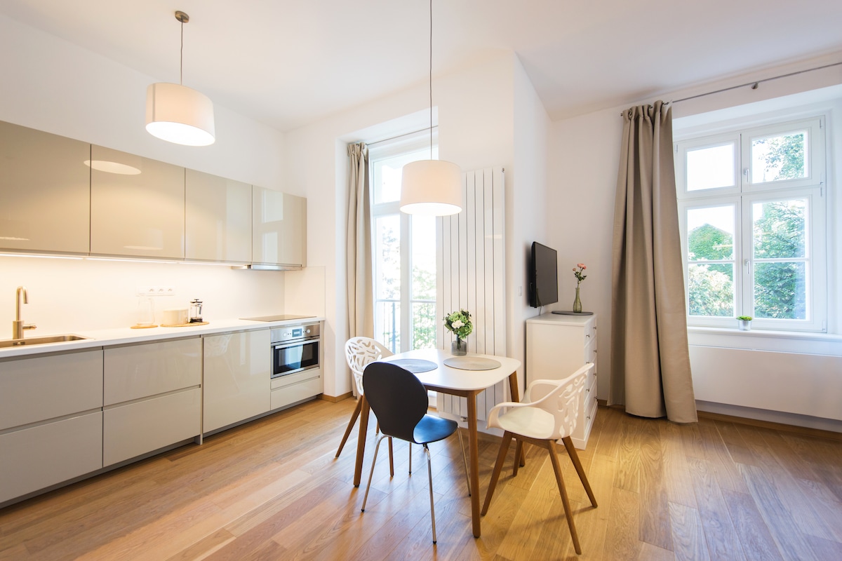Chic Karlín Escape: Günəşli Balkon və Təhlükəsiz Parkinq