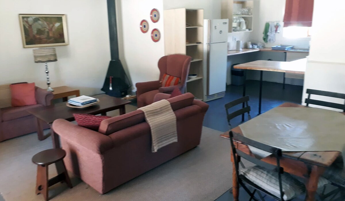 360 degrees mountain views. Tranquil and serene. Come and relax whilst enjoying one of the most beautiful towns in South Africa. Clean and beautiful open plan with en-suite bathroom. Braai. Only 5km from the centre (of which 4km is gravel road, NB!) of Town but feels as if you are far away with the best uninterrupted views. Enquire today if you have any questions or need assistance in your stay with us! 🤍 Bonus: we don't have water problems as the town does & we're completely off-grid!