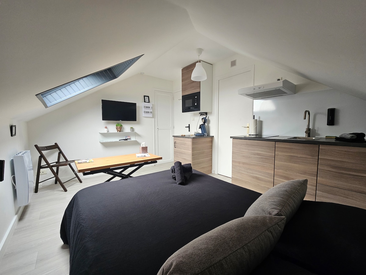İdeal olaraq şəhərin mərkəzində yerləşən Maubeuge, gəzinti girişiniz olduğu üçün avtomobilinizə ehtiyacınız olmayacaq: -Bu stansiya (7-9 DƏQ) -supermarket -restaurant - fast food (MacDo, onotacos, metro.....) - çörək - kinoteatr - gecə dükanı (gecə yarısı bağlanıb) -zoo - Loisi 'Sambre (Kartinq , lazer oyunu , boulinq, uşaq meydançası...) - Vauban istehkam divarları 39m2 mənzil var: - real döşəkli divan çarpayısı! - internet və Netflix