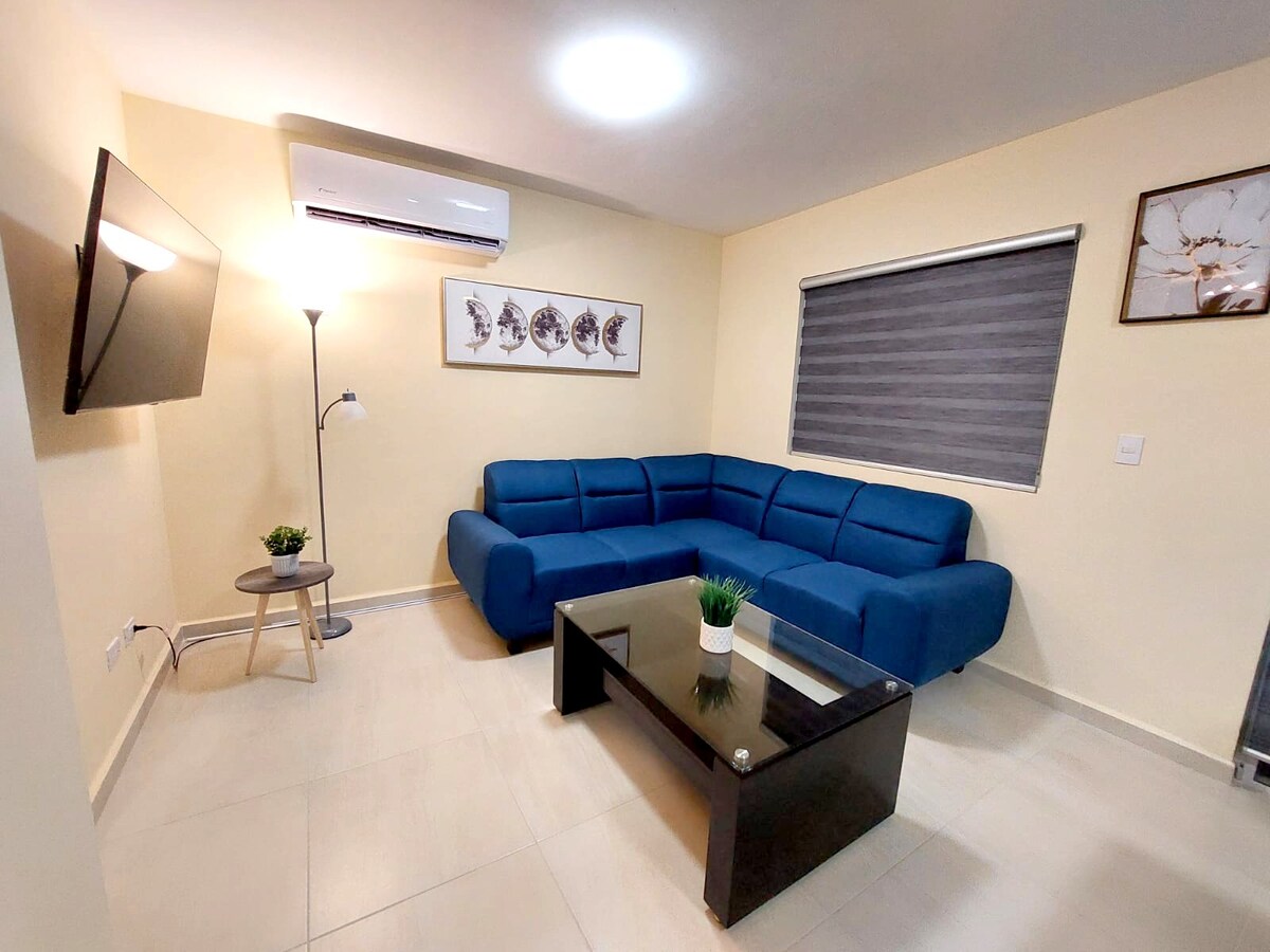 🏡✨ Geniş və rahat 3 yataq otaqlı ev – Monterrey Hava Limanına yaxın Ailələr, qruplar və ya işgüzar qonaqlamalar üçün mükəmməl olan bu iki mərtəbəli ev rahatlıq, məxfilik və 7 nəfərə qədər qonaq üçün geniş məkan təklif edir. Monterrey Hava Limanından cəmi 15 dəqiqəlik məsafədə, sakit və əlçatan bir ərazidə yerləşir.
