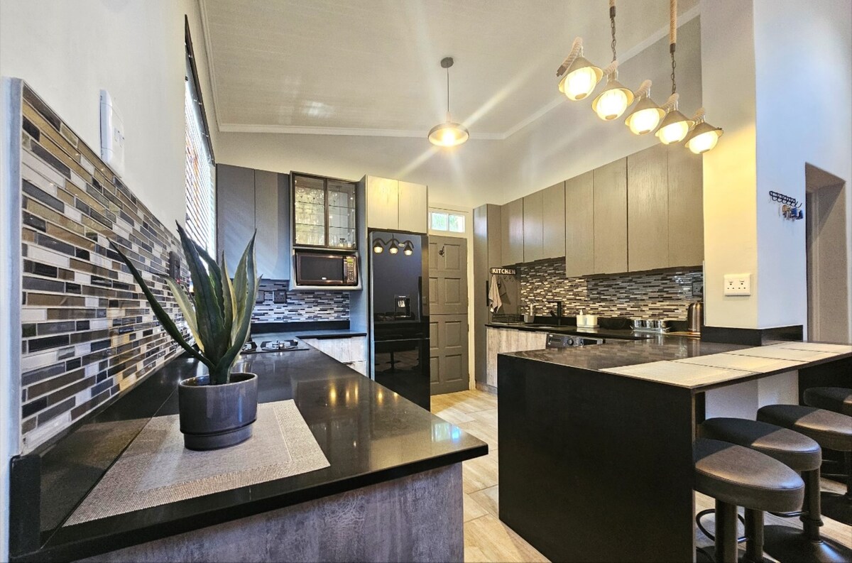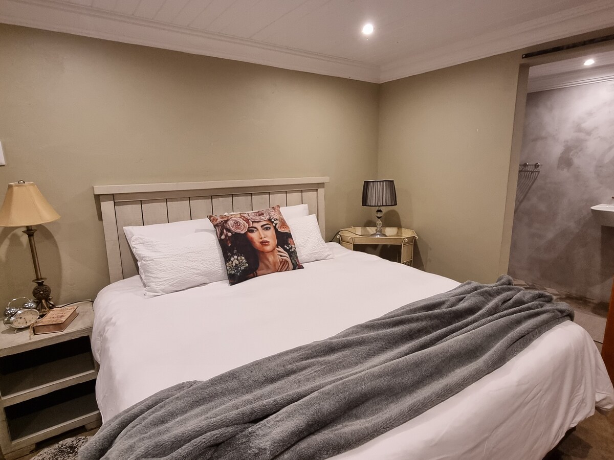 Biznes və ya istirahət üçün Carters Glen-ideal-da müasir 1 otaqlı mənzil. Cütlüklər üçün bir ədəd 180-22 sm ölçülü çarpayı və ya həmkarlar üçün 2 ədəd tək çarpayı (qışda elektrik yorğan ilə), Smart TV, qaz qazanı və elektrik enerjisinin kəsilməsi zamanı Wi-Fi, TV və telefonun enerji ilə təmin edilməsi üçün invertor daxildir. 2400L JoJo çəni ehtiyat su təmin edir. Braai, hovuza giriş, kiçik parkinq və pulsuz Wi-Fi olan ayrıca verandadan zövq alın. Təhlükəsiz, sakit məkan - Kimberlidə evdən uzaqdakı eviniz!