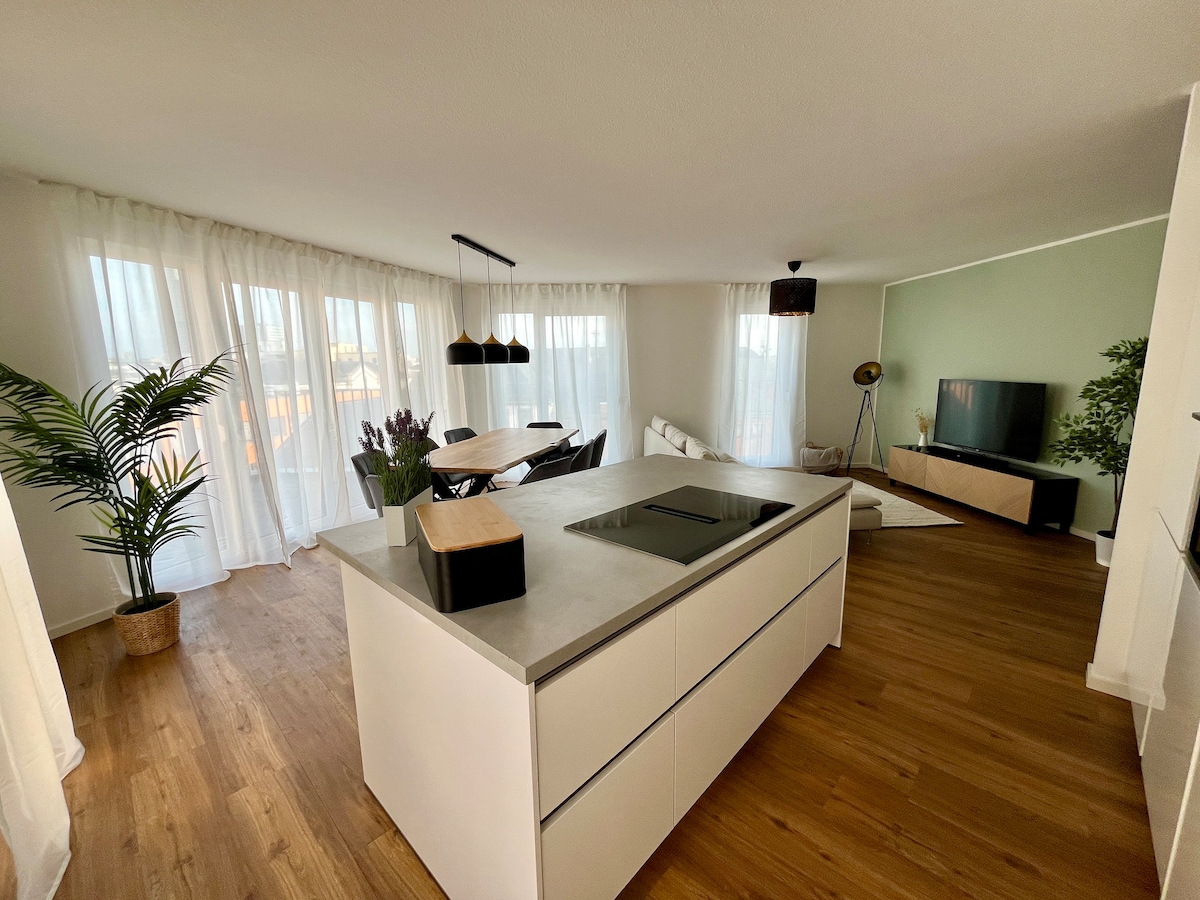 ⭐️“Stop scrolling, you've found the accommodation you're looking for.”⭐️ ✔️High-quality bed linen & towels included ✔️Free washer & dryer ✔️Air conditioning in all rooms ✔️ Free parking right at the house ✔️ Large kitchen with cooking island & 4 bar seats ✔️ Super family- & kids-friendly – children’s paradise ✔️Quick connection to Frankfurt / trade fair (Messe) ✔️ Private courtyard/garden with lockable gate ✔️ Super-fast Wifi & all streaming services ✔️ Big dining table for at least 8 people