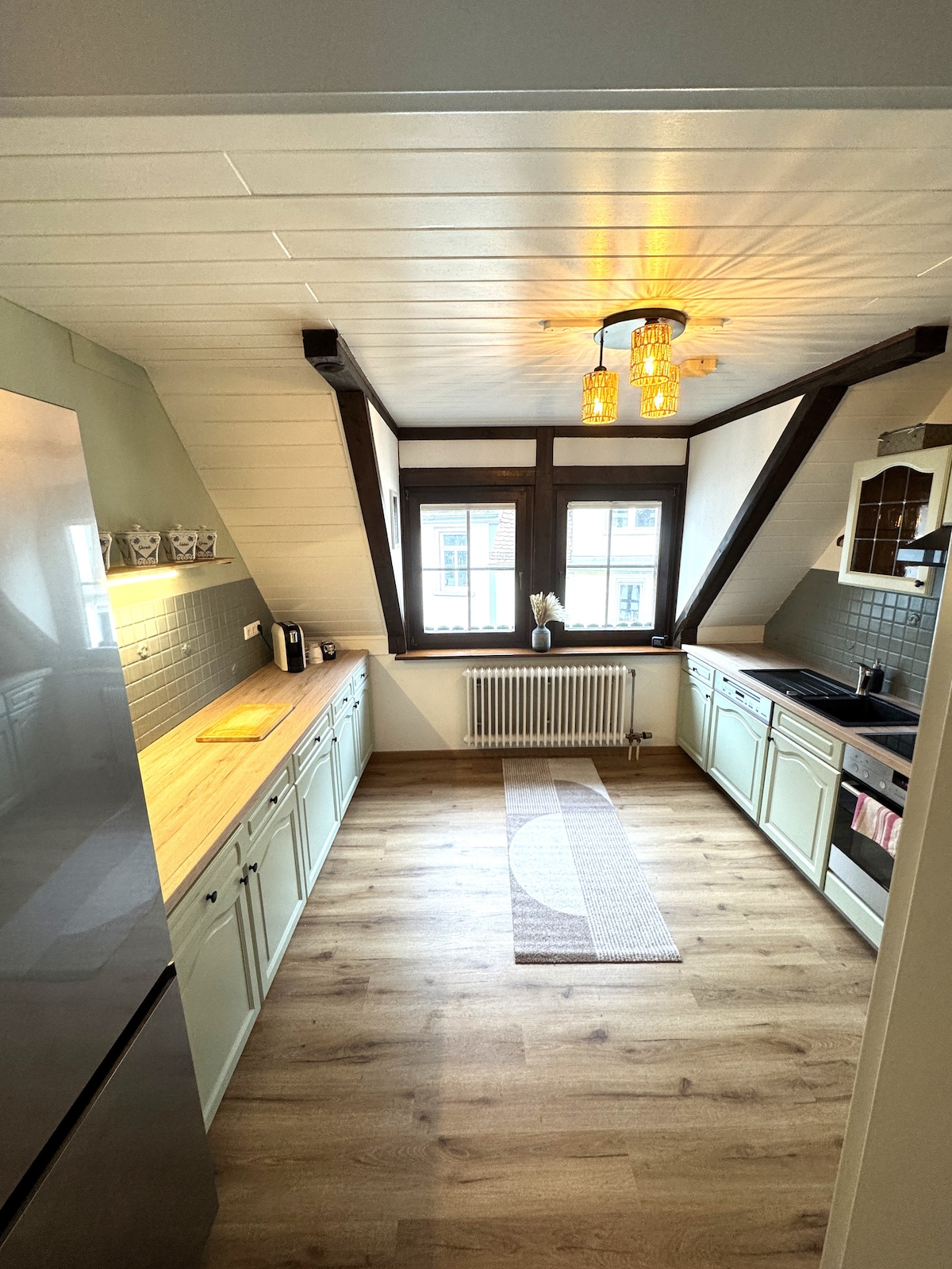 Panoramik 60 m² mənzil – maksimum 4 qonaq üçün • Böyük ölçülü çarpayı, divan çarpayı, qatlanan çarpayı (sorğu əsasında), uşaq çarpayısı • Tam təchiz olunmuş mətbəx: soba, soba, çaydan, qəhvə maşını, qabyuyan maşın, soyuducu, televizor • Yüksək keyfiyyətli döşəkağı-dəsmal, dəsmal, qəhvə və çay • Günəş salonu, təbiət mənzərəsi olan böyük terras Əla mövqe: • Avtomobillə 5 dəq/ İdşteyn mərkəzinə piyada 30 dəq • Piyada gəzinti yolları qapıda başlayır • Frankfurt Hava Limanına və Wiesbaden-ə 20 dəq • Avtoban üçün 2 km • Yaxınlıqdakı oyun meydançası və ən yaxşı manqal restoranı