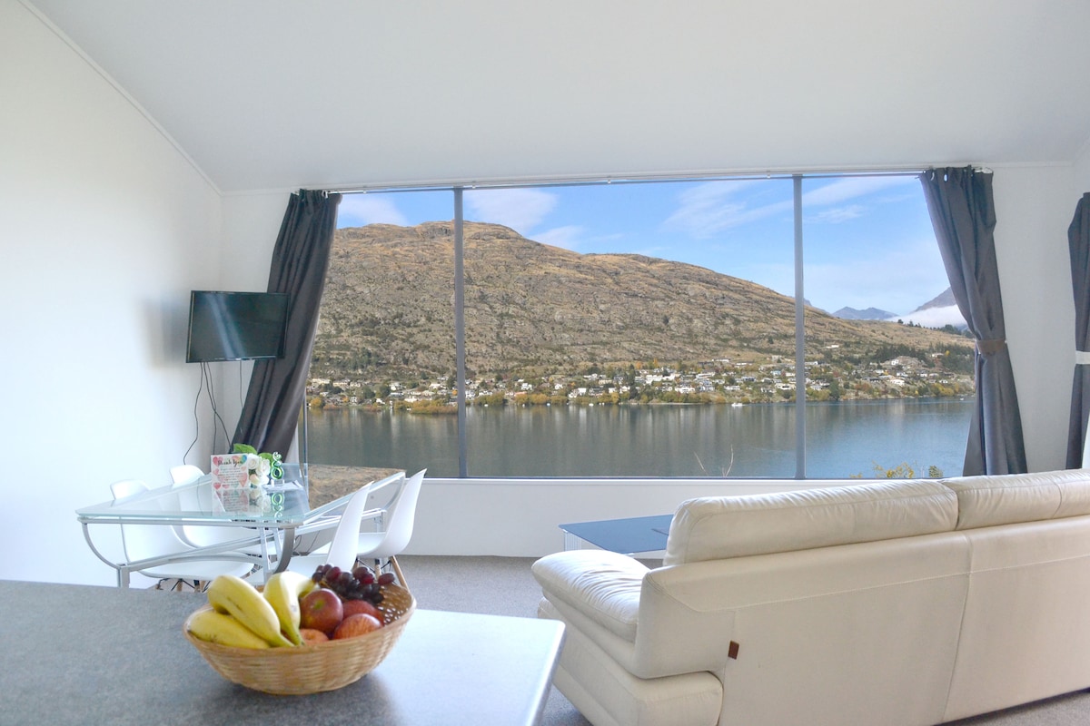 Vakatipu gölünün və Remarkables dağlarının qeyri-adi mənzərəsi olan bu heyrətamiz mənzildən zövq alın! Salonda və balkondan romantik gecə mənzərəsi var. O, gölün üstündəki təpədə yerləşən böyük bir yerdədir. Sizin eviniz Kvinstaunun mərkəzi şəhərindən cəmi 8 dəqiqəlik məsafədədir. Həmçinin hava limanından,ticarət mərkəzindən 5 dəqiqəlik məsafədədir, xizək sahəsinə və digər fəaliyyətlərə asanlıqla gedə bilərsiniz. Gölün önünə(Marina sürmə məsafəsində) və ictimai nəqliyyata 5 dəqiqəlik piyada məsafəsindədir.